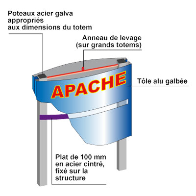 – Structure intérieure en acier galva adaptée aux dimensions du totem